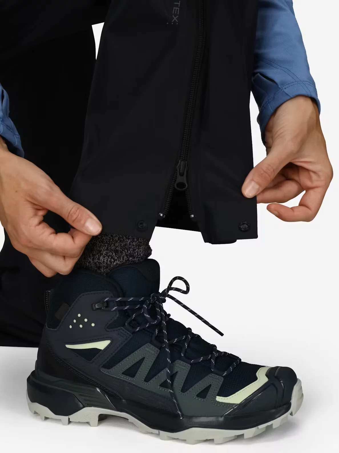 • Covered 3/4 length side zips for easy on and off